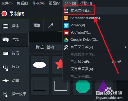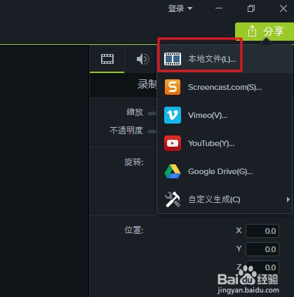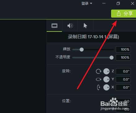 1) 在编辑完或者录制完视频之后,首先点击菜单栏上的“分享”