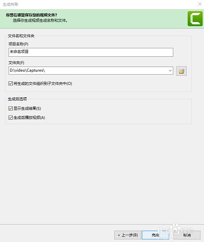 7)接下来设置好保存的文件目录,点击“完成”即可