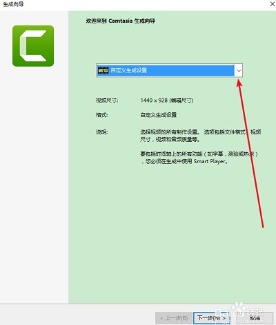 6)看到如图所示的下拉菜单,选择要保存的文件格式,点击“下一步”