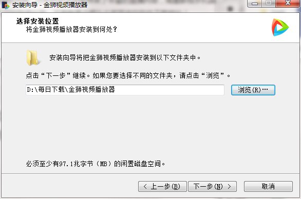 1、在将金狮视频播放器下载下来,并解压到当前文件夹中,点击其中的金狮视频播放器.exe应用程序,进入安装向导界面,接着点击下一步。