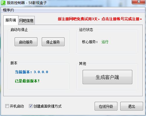 可以一键授权本网吧全部电脑,可以设置开机启动