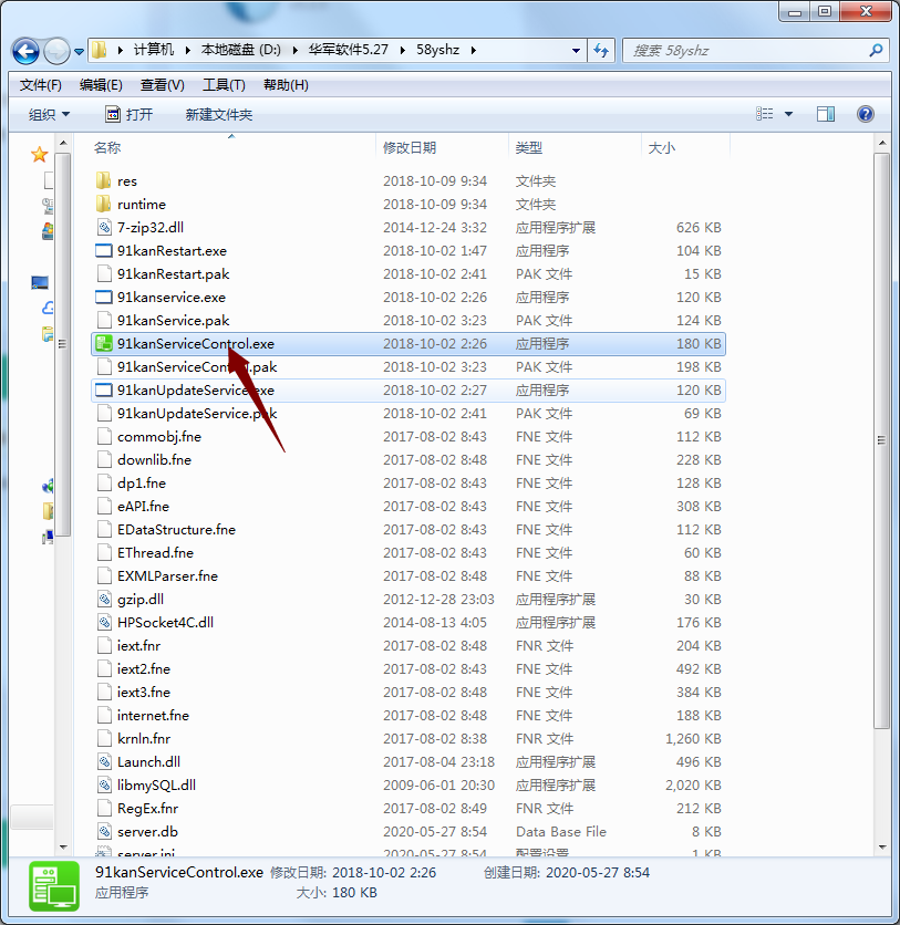3、这时我们点击文件夹中的91kanServiceControl.exe应用程序
